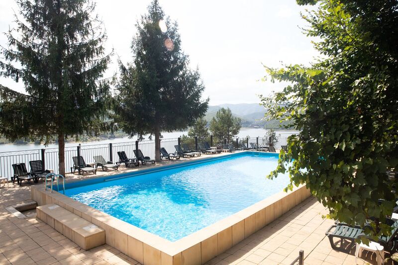 Oaspetii pot servi masa pe una din cele doua terase cu vedere panoramica la lacul Cincis.